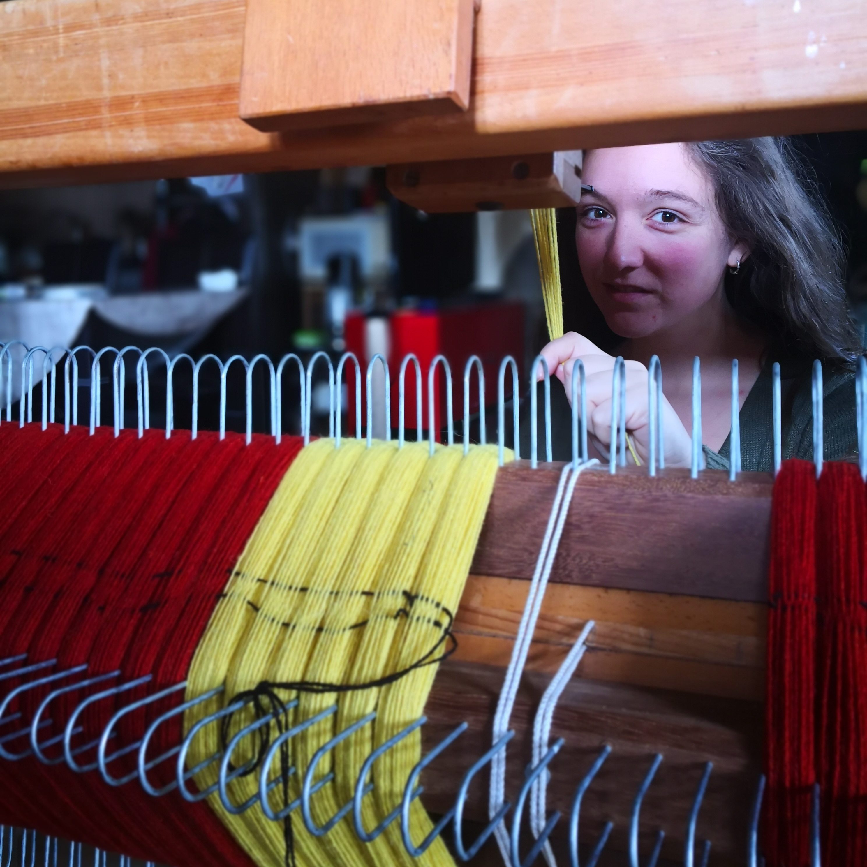Préparer une chaîne, l’ourdire (montage) sur le métier m’a très vite passionné, tout comme le faite de revenir à un métier proche des matières et textures où chaque étape est réalisée à la main avec un geste demandant précision et savoir-faire.